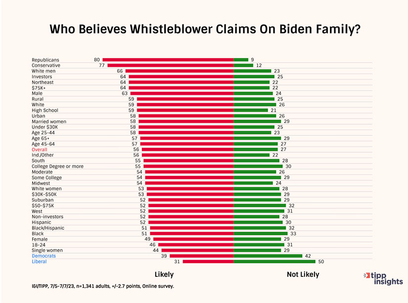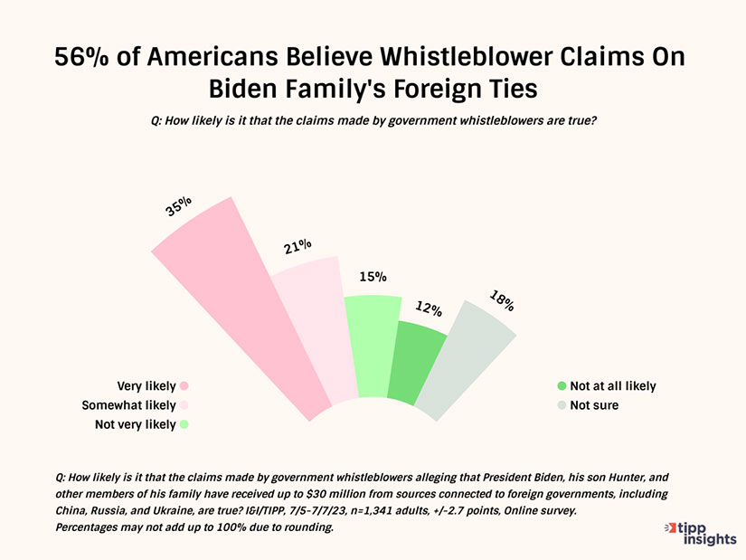 You can read the full story here: https://issuesinsights.com/2023/07/12/56-of-voters-agree-biden-likely-took-bribes-in-office-ii-tipp-poll/