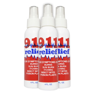 911 Relief is THE first aid spray to relieve pain, itching, and swelling related to many sources of sunburns, stings, bites, and skin irritations.