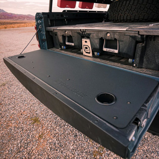 The TRAILGATE® has multiple functions, like transforming your tailgate into a flat workbench or table. The cup holders keep your drink safe from spilling and are great for holding bolts for your weekend projects.