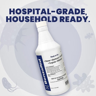 BenzaRid is hospital-grade and household-ready. BenzaRid is a medical-grade broad-spectrum disinfectant that quickly and effectively cleans while being safe on everyday household and hospital surfaces.
