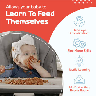 - No sleeves mean no wrestling to get the bib on the baby and no excess fabric causing a distraction or a bigger mess. If baby wears long sleeves during a messy meal, roll them up!