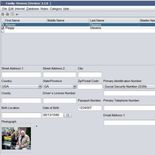 All file categories can be seen on the right of the Family Fact Screen shown below. Other screens include: