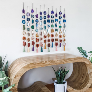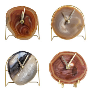 Handcrafted to the highest standards, Jessica's creations blend artisan materials from Brazil and components made by small US-based companies. Sustainably sourced agate slices are carefully placed on powder-coated metal bases, complemented with elegant brass and gold accents. Powering every timepiece is a Seiko mechanism, ensuring a silent operation and timeless design that will last for generations. Transform any nightstand or desk with a captivating statement piece beautifully made with love and care.