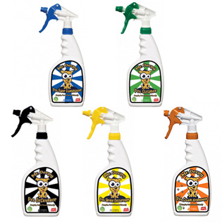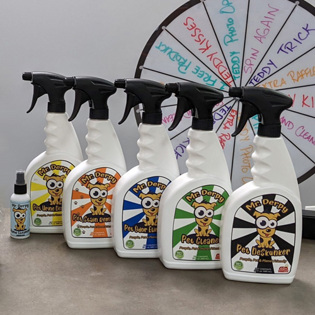 Mr. Derpy's line of products includes Urine Destroyer, DeSkunker, Stain Remover, Green Cleaner, and Odor Eliminator. In development are eye and ear rinses, facial cleansers, and wound care gel for animal