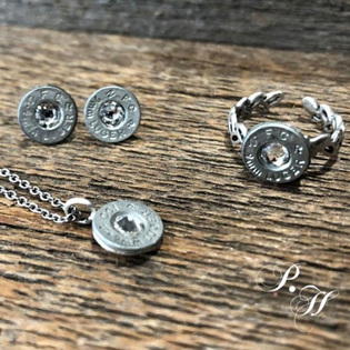 Handcrafted jewelry crafted from once-fired bullets by Pretty Hunter!