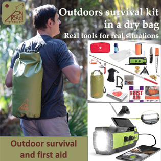 If you are a hiker or love outdoor life and camping, you can benefit from the waterproof dry bag, hand chainsaw, tactical knife, fishing kit, multifunction solar-powered radio with power bank, and most importantly, the first aid kit. This kit contains 127 pieces that can be used for any situation, including natural disasters, emergencies, or wild adventures. Our kit is packed in an oversized 5-gallon dry bag to protect it from moisture. The larger bag size allows our customers to customize our kits by adding additional components that may be needed for different deployments like boating trips, diving, camping, hunting, or keeping in the car for emergencies. Customers have enough available space in the bag to add some medicine, food, clothing, or anything else that may be required for a specific trip or deployment. Most importantly is that you keep yourself and your family safe when needed.