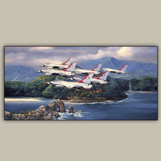 Hear the roar of a fighter jet and be surrounded by the sound of freedom. Feel the splash of sea spray as an aircraft carrier majestically cuts through the ocean's waves. Feel the rumbling power of a steam locomotive as it speeds past you. These are the sights and sounds of freedom today and the glory days of our great nation's history. Be encompassed by the colors, details and composition of world-class art produced for everyone. You'll feel like you've been transported into the painting and present in the middle of the action. These are a few of the reactions you'll experience when you view the patriotic artwork of Rick Herter!