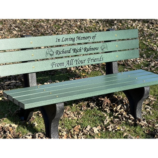 We will make your bench how you want it! Benches are manufactured from recycled plastic lumber. Your bench will last a lifetime, will not rot or fade. We can personalize your bench with our CNC router and letters can be filled with epoxy for that WOW look. We also offer laser engraved plates with any wording you want (scripture, sayings, dates, and even pictures). Our benches are built heavy duty. You will never find a better park bench at a better price.