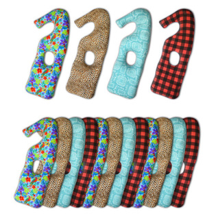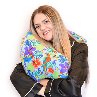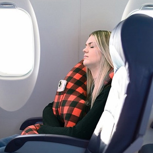 DESIGN JUST FOR FLIGHTS | The latest (and greatest) design for air travel is perfect for any seat on the plane. It's similar to the original but shorter for convenience. The Airplane version has a bungee and button sewn in keeping the pillow hooked around the neck. The hole works the same way as the original, supporting the arms for maximum comfort. The patented design just works, whether the passenger is by the window, in the dreaded CENTER SEAT, or in the aisle.