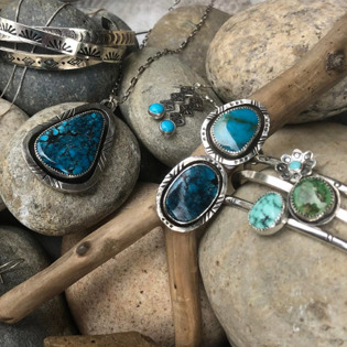 Next, turquoise, being a centuries-old symbol of the Southwest, was my go-to flagship gemstone to showcase in most pieces we create. Although we use many stones from many places, turquoise, in its many shades and shapes, makes up a large percentage of our collections. It's important to note that all of the turquoise used in our jewelry is mined in North America and provides jobs for many lapidaries across our great nation.