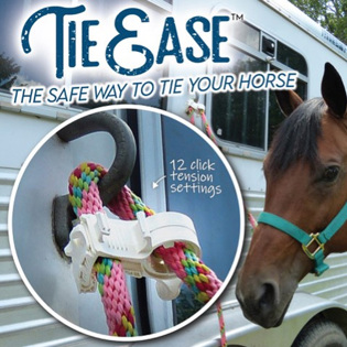 Tie Ease is a unique, patented clamp that is portable, easier, faster, and safer than any product out there. It creates more resistance than other similar products out there. More resistance means extra poll pressure, giving the horse security but still allowing their feet to move.