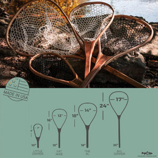 Various shapes and sizes of high-quality fishing nets handcrafted by Wayward Trading Post in the USA!